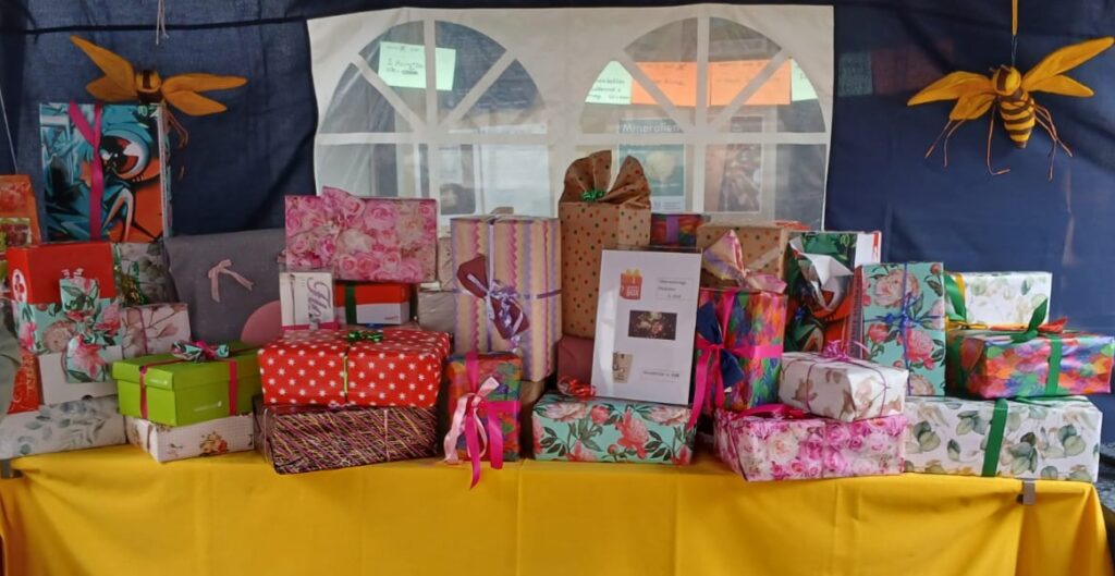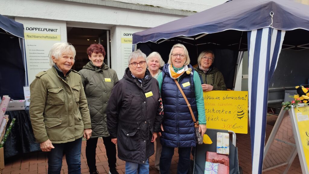 Vor dem „Doppelpunkt“ in der Fußgängerzone warten die LandFrauen mit velen Überraschungspäckchen