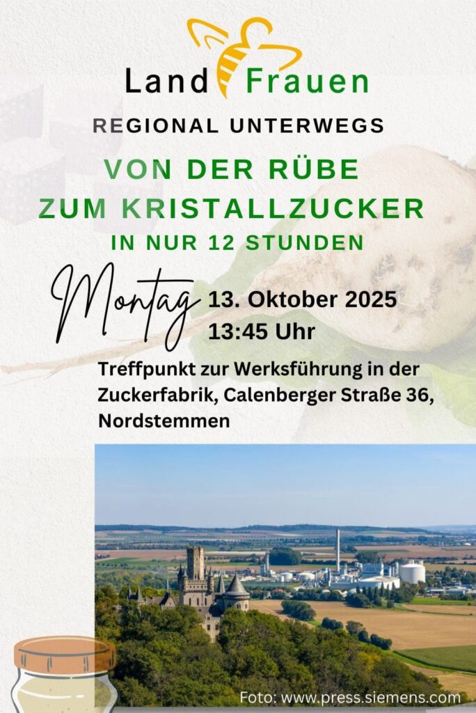 Der Zuckergehalt der Rübe beträgt ca. 18 %. Für 1 kg Zucker benötigt man ca. 7 Zuckerrüben.Den guten regionalen Zucker verkosten wir im köstlichen Kuchen im Deutschen Haus in Nordstemmen, das extra für uns geöffnet hat!