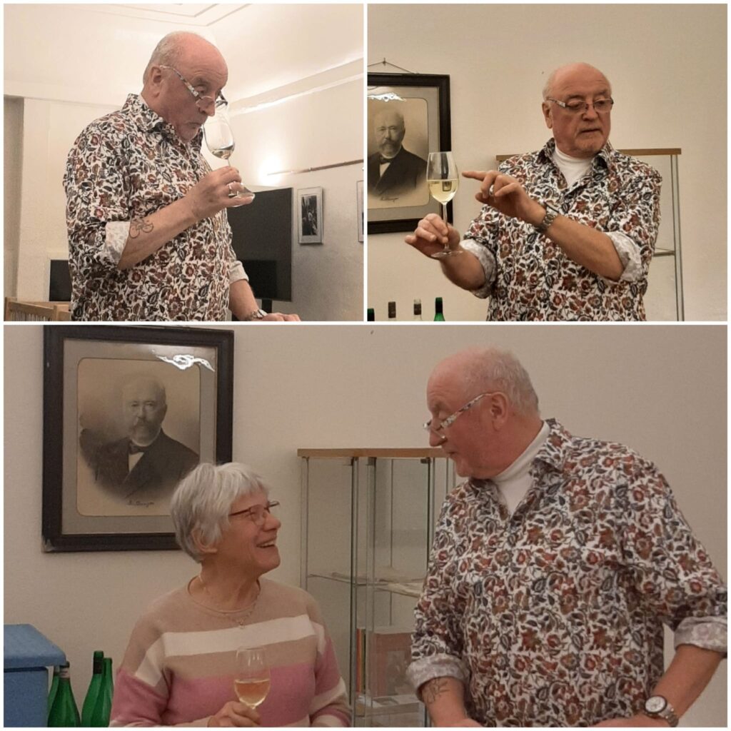 Die Weinverkostung wird begleitet von Hartmut Riecks heiteren Lesungen
