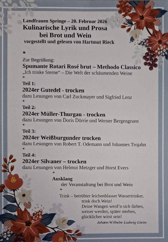 REGIONAL UNTERWEGS in Bennigsen zur Weinprobe 20. Februar 2026