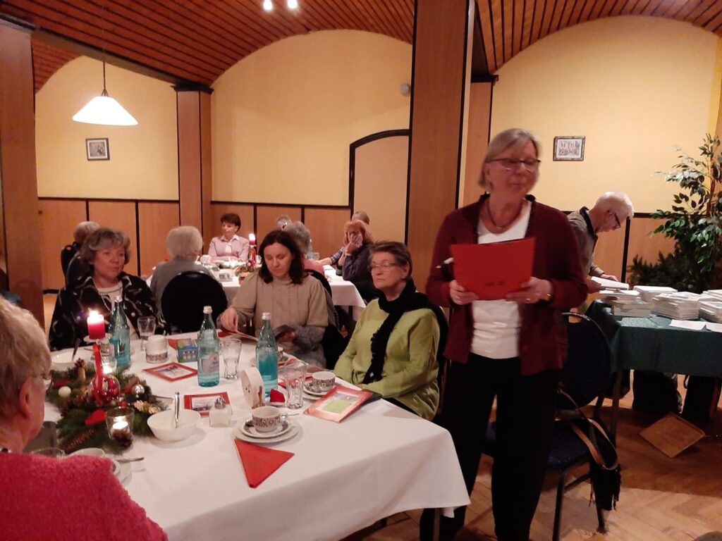 28 LandFrauen waren der Einladung gefolgt und genießen es verwöhnt zu werden. Ab dem 90. Geburtstag darf man jedes Jahr dabei sein!!! Ulrike Diefenbach liest eine heitere Geschichte über die LandFrauen vor.